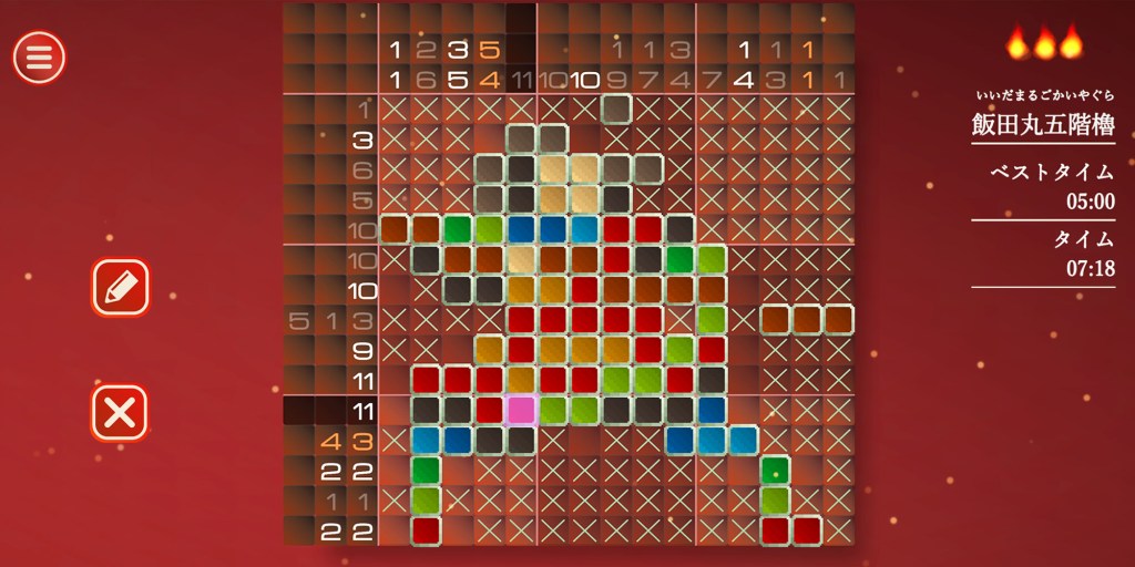 戦国ロジックは、日本の戦国時代の名城を築城する、お絵かきパズルゲームです。